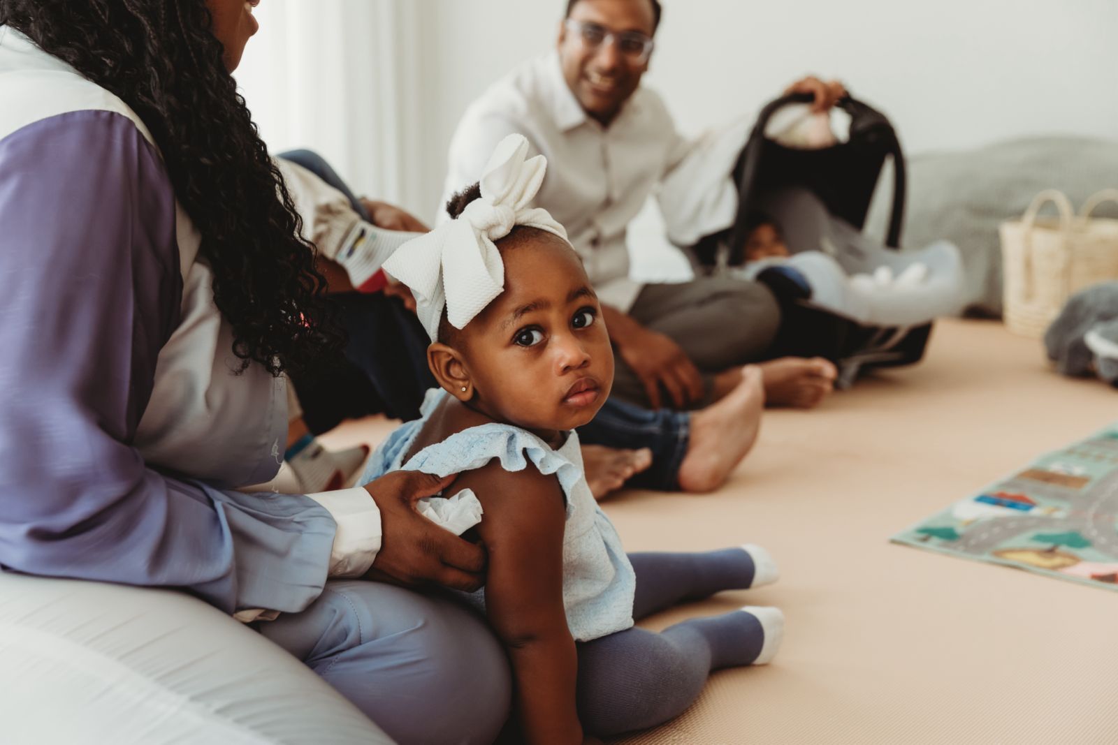 A warm, quiet, and welcoming space where a mom, dad, or nanny can care for their little one while still staying connected to the service through a live video and audio feed.